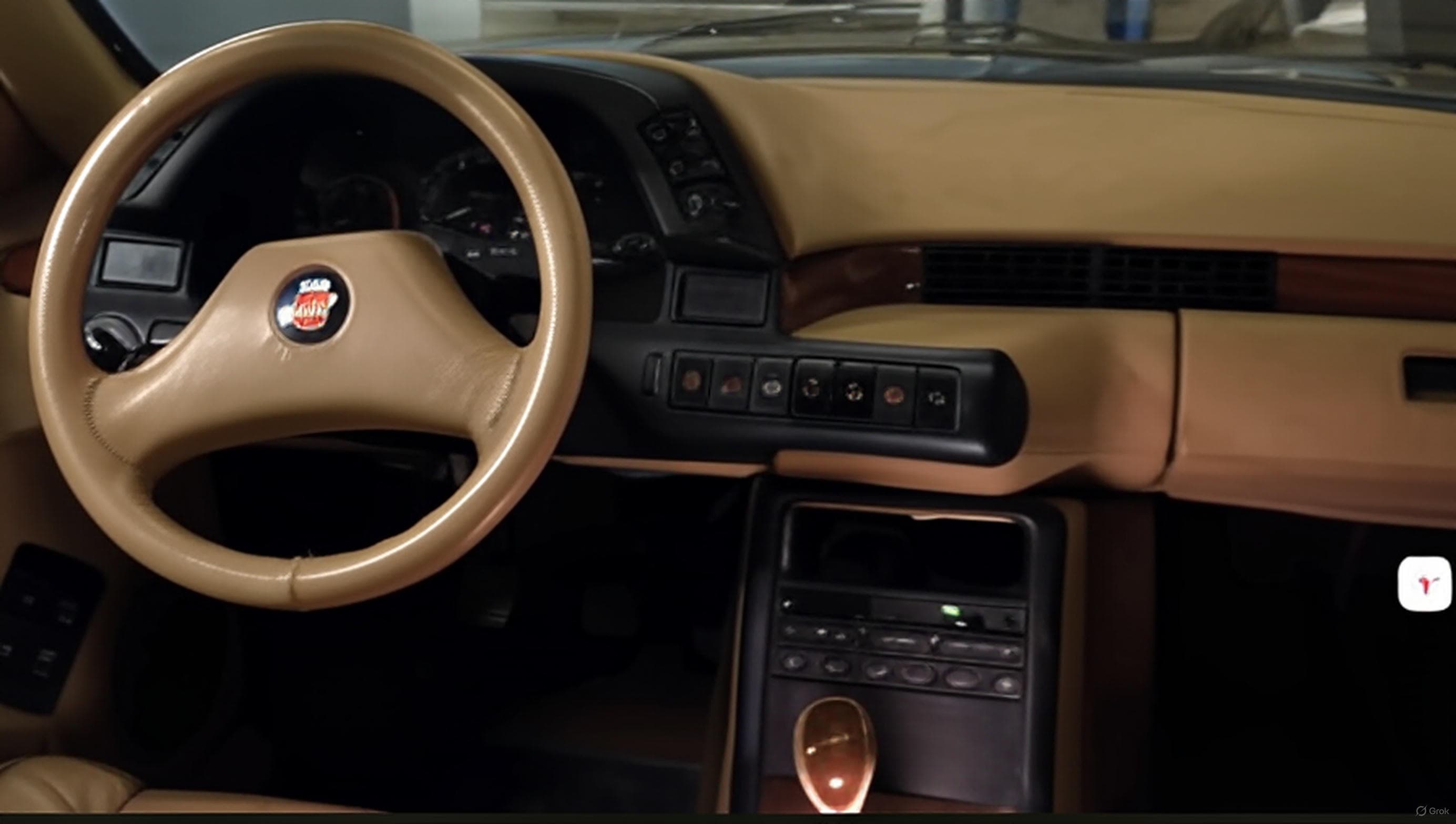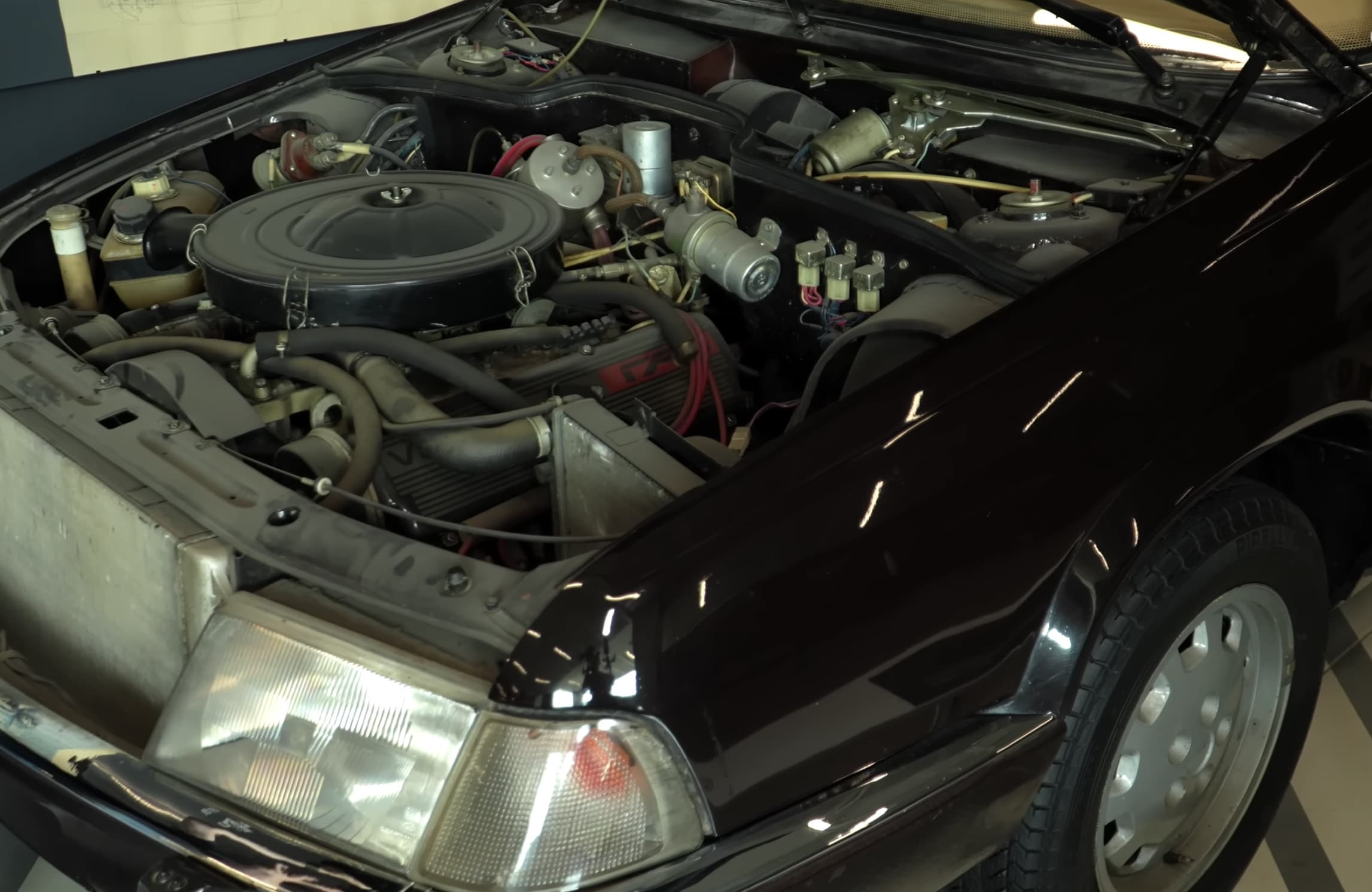 В салоне же для 87-го года был настоящий шик — панели из натурального дерева, все 4 электростеклоподъёмника, электрозеркала, кондиционер от Lancia, подогрев всех сидений и 2 экранчика по обе стороны от руля, один из которых показывал состояние основных систем автомобиля, а другой — индикацию открытых дверей и головного света.