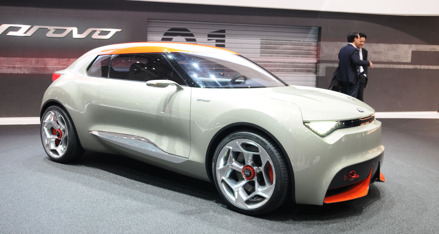 Концепт от Kia, имеющий некоторое подозрительное сходство со смелым экспериментом других корейцев — Hyundai Veloster. Несмотря на все свои странности, такие, как 4 двери вместо обычных 5, Veloster имел успех и в 2013 году Kia выпустила свой концепт — гоночный хэтчбек-купе/кроссовер и представляла его как гоночный автомобиль для повседневного использования. Проект казался весьма интересным, однако, в серию ничего похожего у Kia так и не вышло. Ходили слухи, что компания опасалась запускать в продажу автомобиль с таким именем в Северной Ирландии, но настоящих причин того, почему машина не пошла в серию, никто не знает.