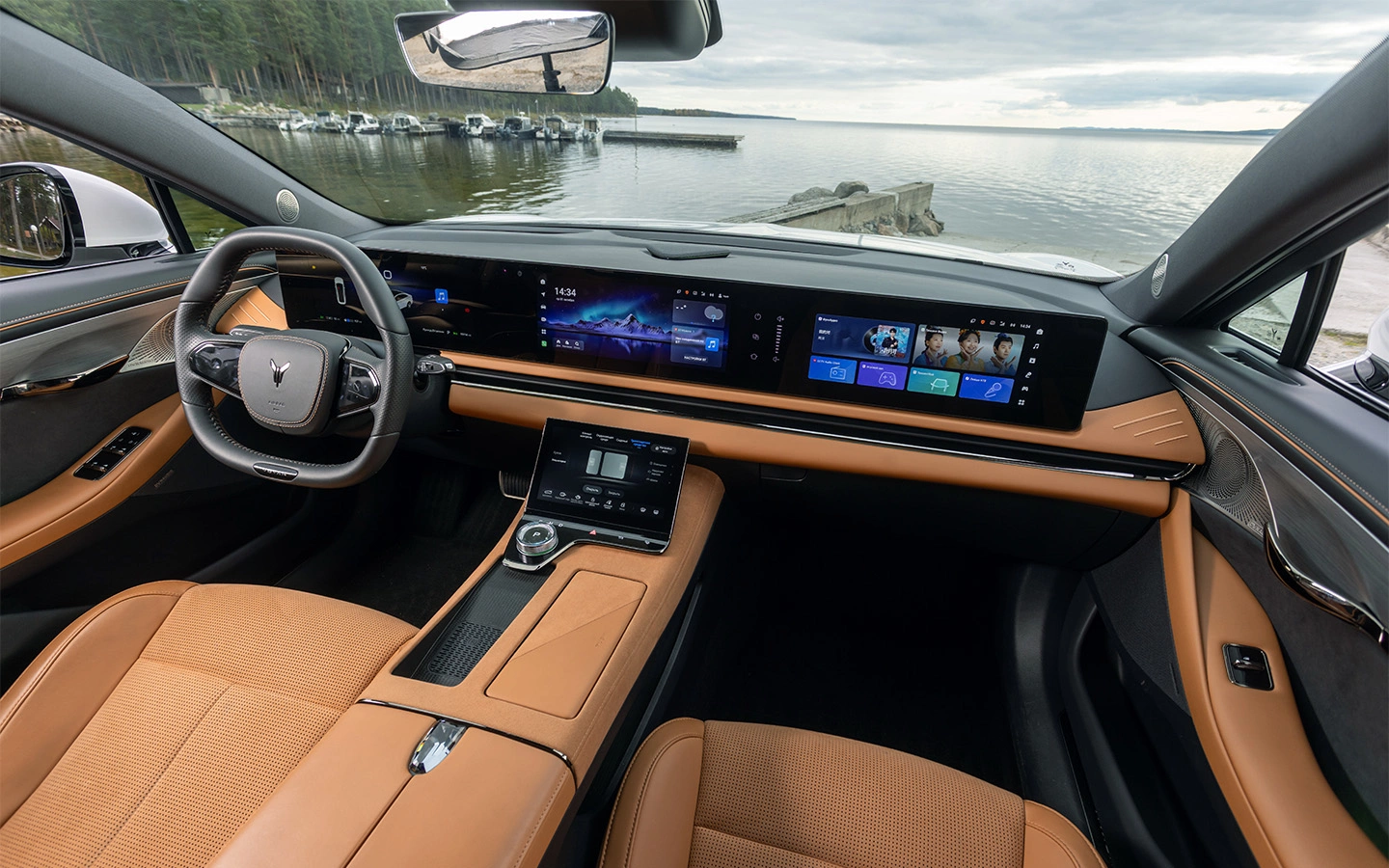 Салон сохранил фирменный стиль — три экрана в ряд и четвёртый для климат-контроля. Клавиши стеклоподъемников стали физическими, вместо прежних сенсорных. Интерьер предлагается в двух цветовых схемах: чёрно-серой и коричнево-серой. При этом дорогих элементов вроде доводчиков дверей, шторок или натуральной кожи не предусмотрено — используются качественные заменители.