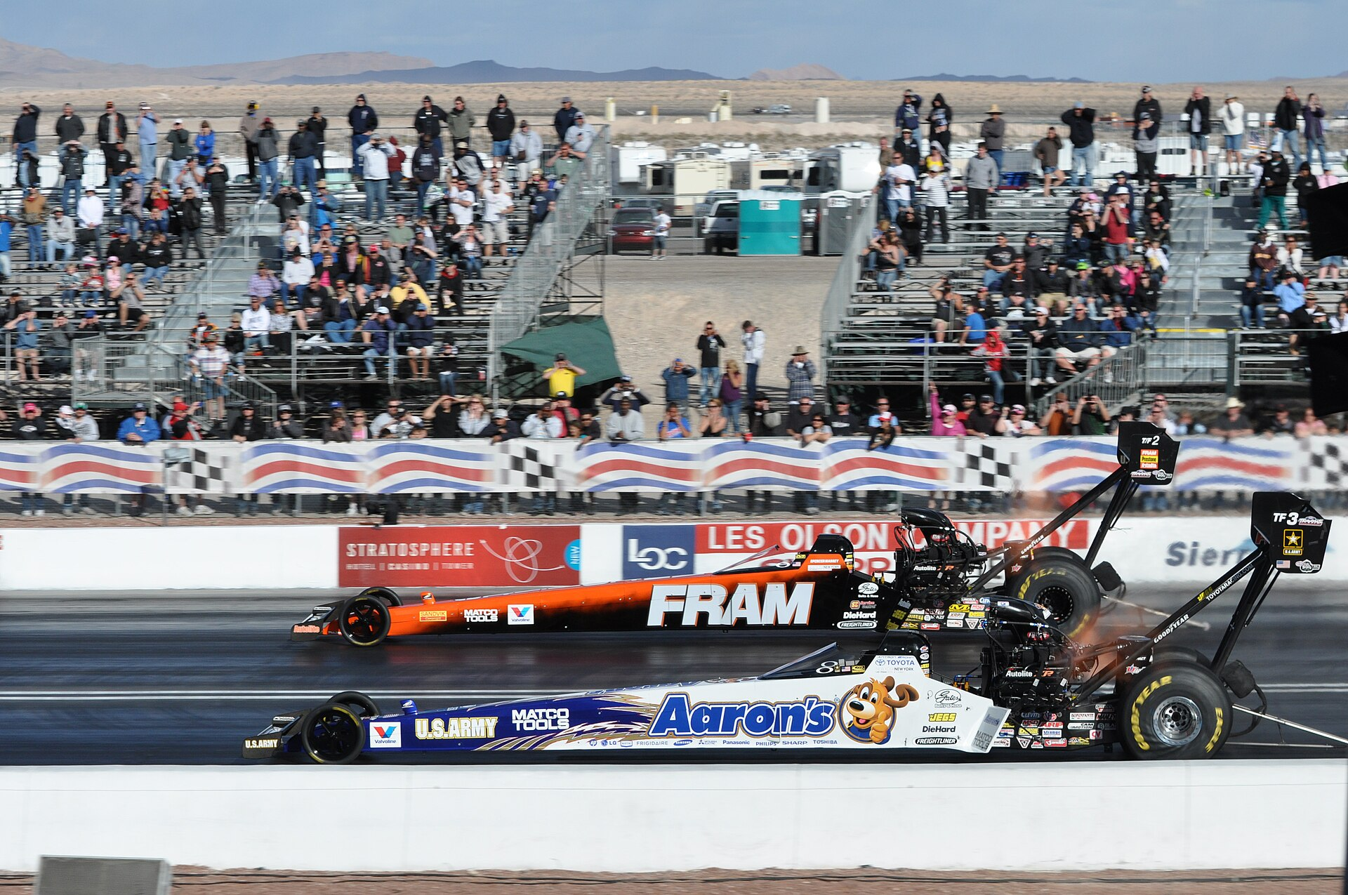 Top Fuel проходит 300 метров за 3,7 секунды. Расход топлива — смесь нитрометана и метанола — около 50 литров в секунду! Двигатель V8 на базе легендарного Hemi выдаёт 8000–10 000 л. с. Нагнетатель — обязателен, коробки передач нет: мощность передаётся через многодисковое «тракторное» сцепление.