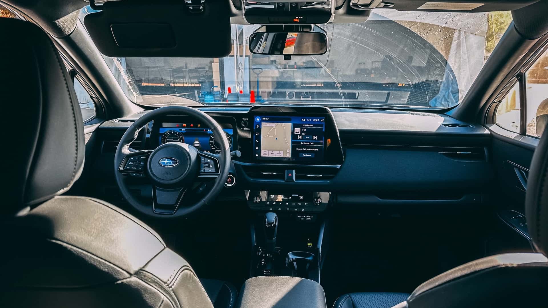 Внешность — самое спорное изменение. Плавные линии и покатая крышка багажника ушли в прошлое. Теперь кузов вертикальный и угловатый, как у старых Subaru 80-х. Передок и корма перекликаются с Forester: огромная чёрная решётка, мощный пластиковый обвес, клиренс поднят на 35 мм. По бокам появились накладки «акулья кожа» — текстурированный пластик, который должен снижать шум ветра. Вживую автомобиль выглядит компактнее и аккуратнее, чем на фотографиях, а габариты почти не изменились.