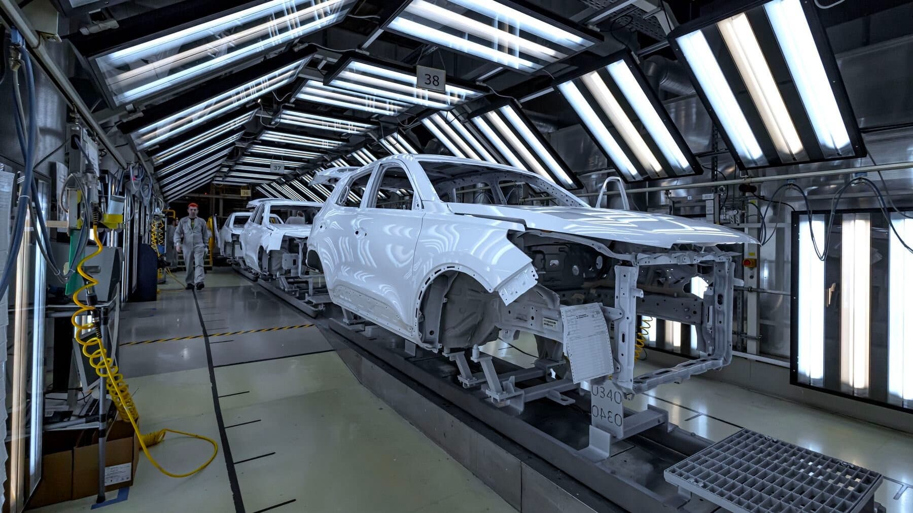Важной модернизацией стал и окрасочный цех площадью 36 тысяч м². Здесь полностью автоматизировано нанесение всех покрытий, включая грунт, эмаль и лак. Работает 57 роботов, а персонал имеет доступ только к зонам обслуживания оборудования. Перед нанесением краски кузова проходят обезжиривание, фосфатирование и катафорезное грунтование по технологии RoDip — кузов вращают в ванне, чтобы материал проник во все скрытые полости. Для российского рынка показатели ЛКП усилили: если для Китая норма — около 90 микрон, то на заводе для отдельных зон доводят слой до 120–130 микрон. После лака кузов проходит сушку, очистку страусиными перьями и герметизацию швов вручную.