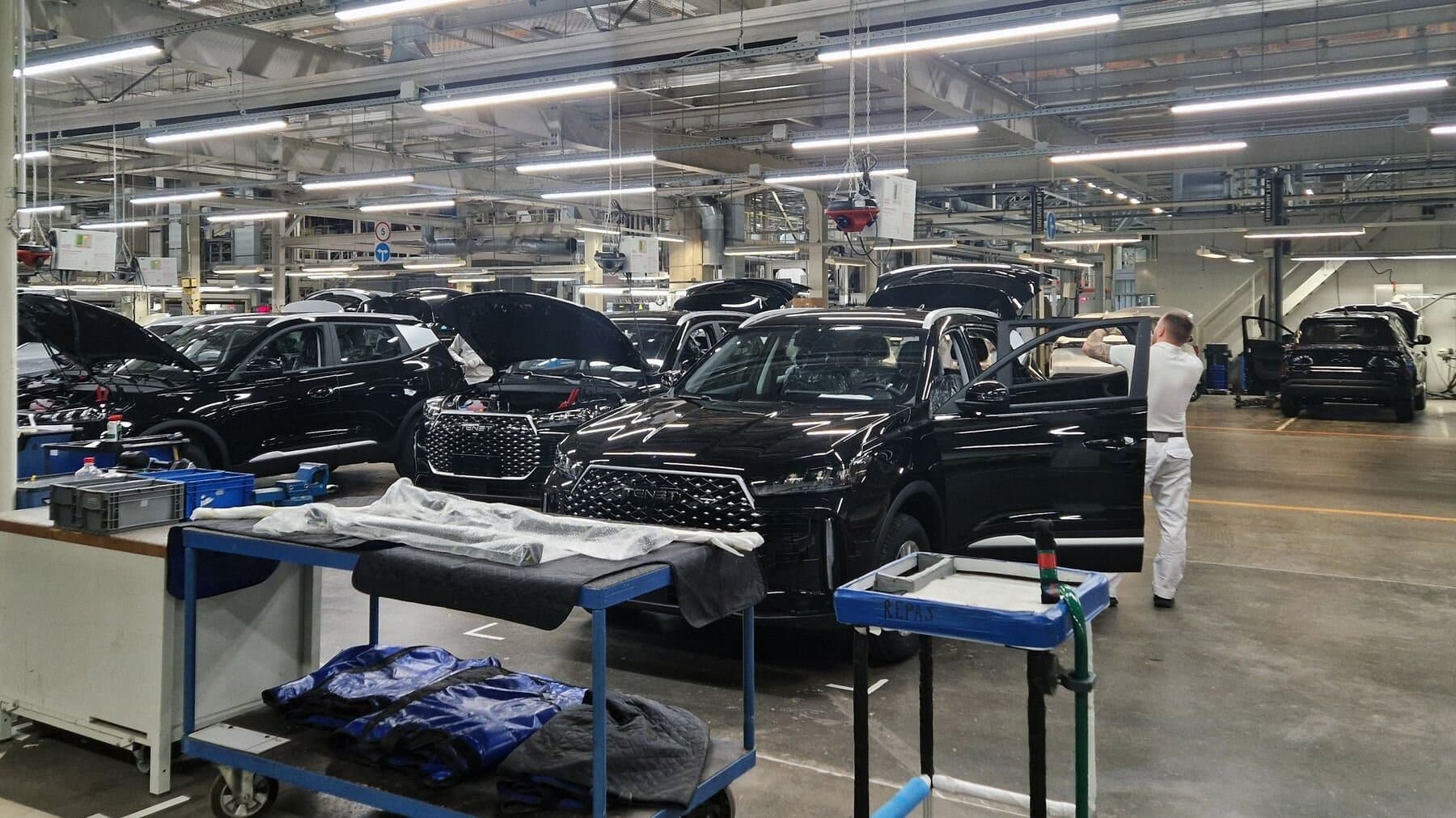 Сборочный цех — противоположность сварки: здесь уровень автоматизации всего 5%, но это стандарт для финальных линий. На 58 тысячах м² трудятся 1 352 сотрудника, которые собирают автомобили на 129 станциях с электронными гайковёртами. Каждый момент затяжки фиксируется — система знает, кто, когда и какой болт затянул. Силовой агрегат устанавливается на так называемой «свадьбе», куда заранее подаются подсобранные передний и задний подрамники, рулевое управление и трубопроводы. Двигатели и коробки пока импортируются из Китая, но «АГР Холдинг» изучает варианты локализации моторного производства, как это было во времена Volkswagen.