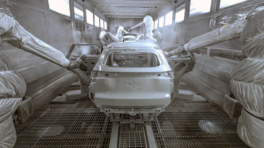 Цех сварки — сердце производства — занимает почти 72 тысячи м², имеет длину конвейера 3,3 км и способен выдавать 41 кузов в час. Здесь задействованы 681 сотрудник и 332 робота, обеспечивающие уровень автоматизации в районе 90%. Кузова собираются из заранее штампованных элементов — собственного штамповочного производства у завода пока нет. На отдельных линиях параллельно свариваются полы, крыши и боковины, затем детали проходят обязательный визуальный контроль. Если выявлены дефекты — подсборка отправляется на исправление.
