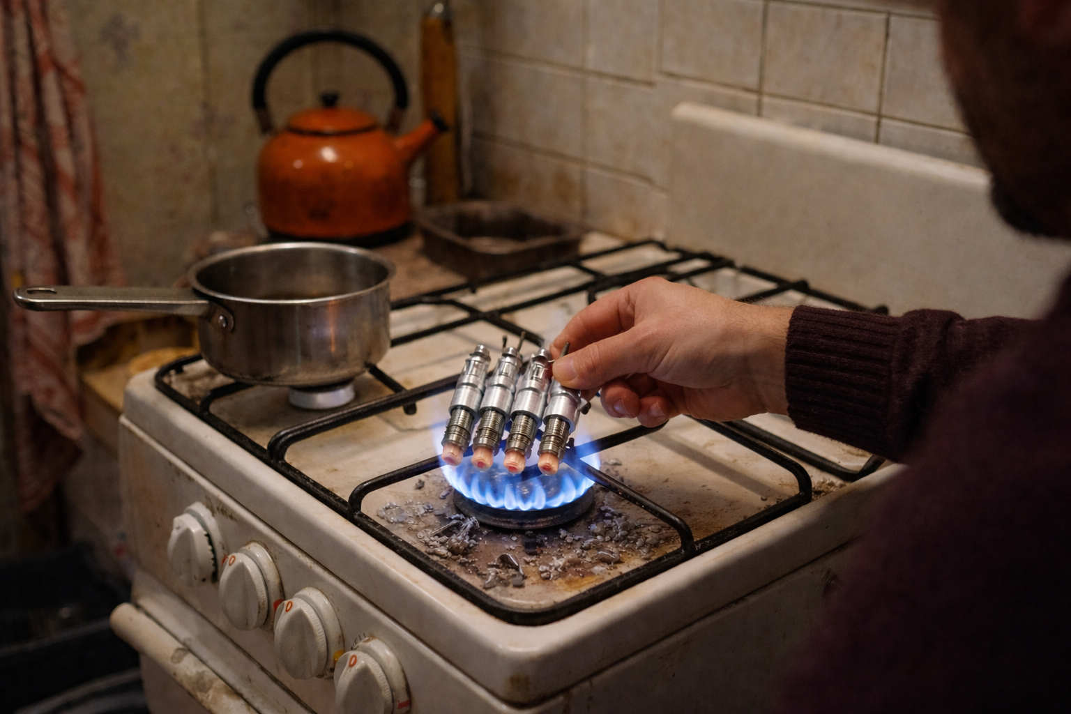 Если стартер крутил, но двигатель не «схватывал», переходили к следующему приёму. Свечи зажигания выкручивали, относили домой и прогревали на газовой плите. Затем переносили обратно — обычно в металлическом ковшике — и быстро устанавливали.