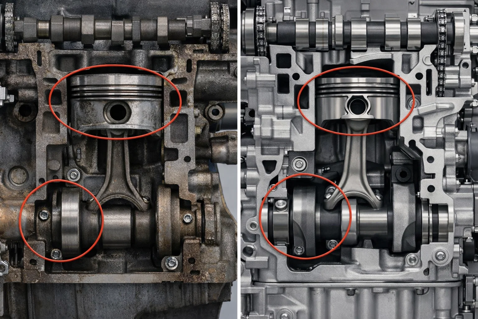 Современные конструкции стали компактнее и легче: уменьшились размеры шеек валов, поршни стали существенно меньше, кольца — тоньше. При этом удельная мощность выросла. Логично, что ресурс при таких нагрузках сократился.