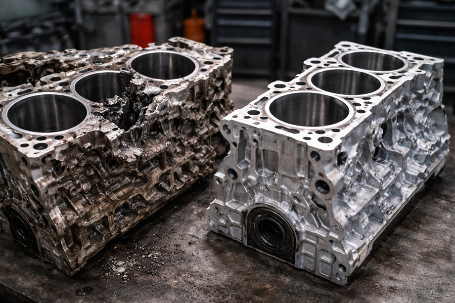 Отдельная категория — турбированные агрегаты. Многие из них, включая ряд моторов Volkswagen (хотя в последние годы встречаются и алюминиевые варианты), выполнены на чугунных блоках. В стандартной конфигурации такие двигатели способны пройти 200–250 тысяч километров и более при корректной эксплуатации. Проблемы нередко возникают из-за чип-тюнинга: увеличение мощности («стейдж») дополнительно нагружает узлы. В результате агрегат может получить серьёзные повреждения. Известны случаи с трёхцилиндровыми моторами Geely, где происходил разрыв блока. В подобных ситуациях требуется замена блока, а иногда и головки блока, повреждённой вследствие разрушения.