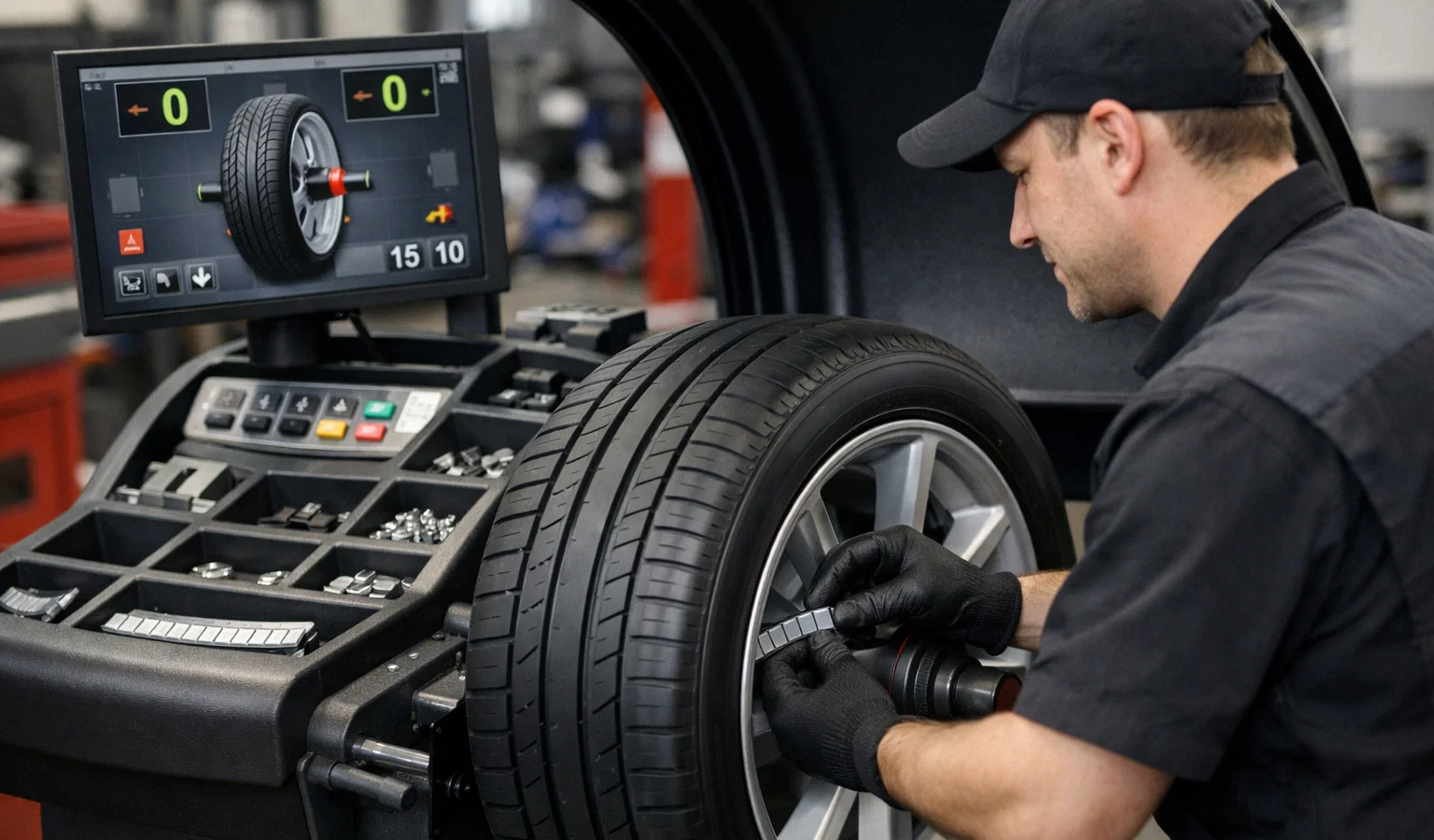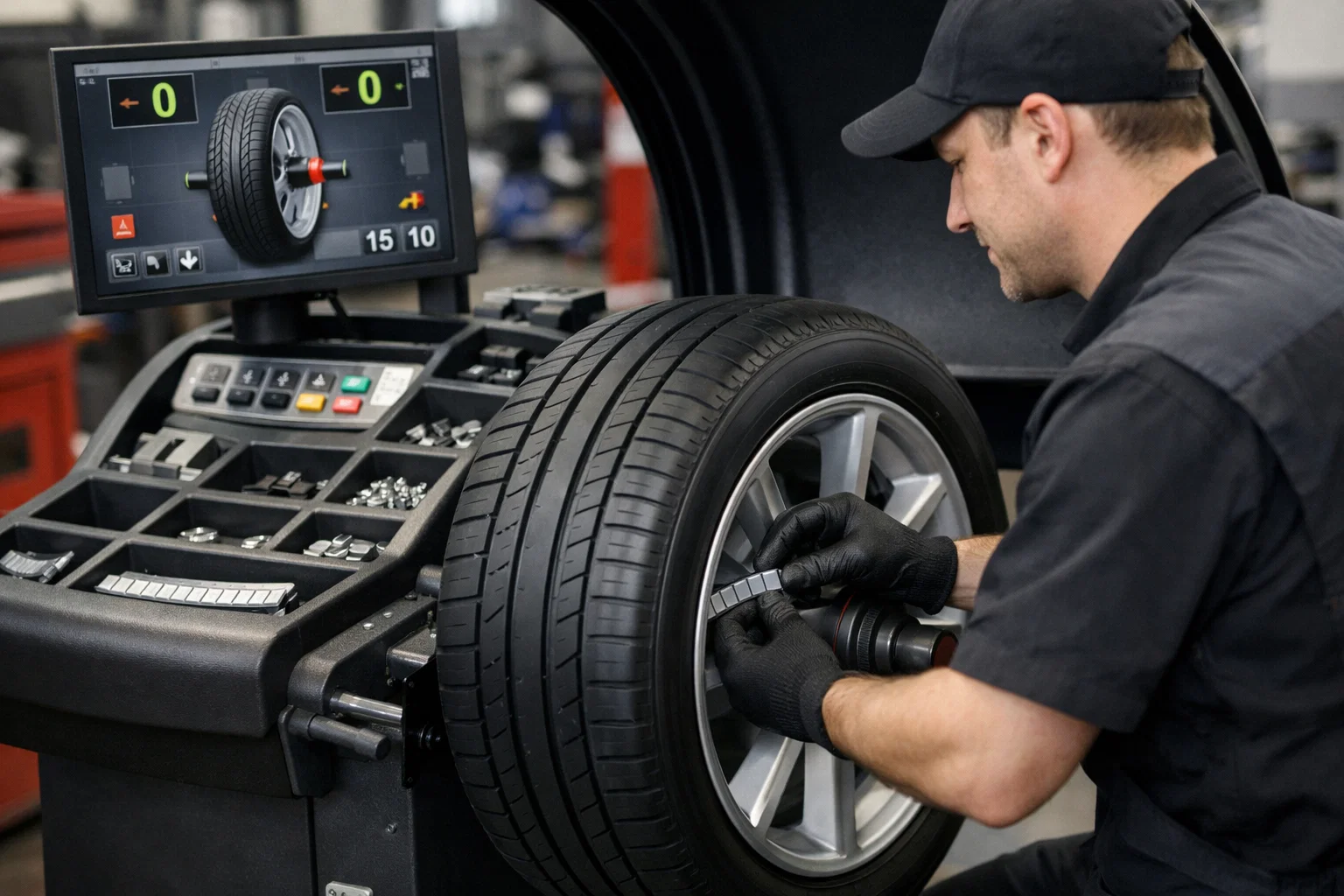Процедура балансировки выполняется на специализированном оборудовании — балансировочном стенде. Колесо раскручивается, а датчики фиксируют отклонения, определяя как статический, так и динамический дисбаланс. На основе полученных данных система рассчитывает точную массу и место установки противовесов. После этого мастер размещает грузики в указанных точках: для штампованных дисков — набивные, для литых — клеевые. При корректном выполнении процедура полностью устраняет дисбаланс.