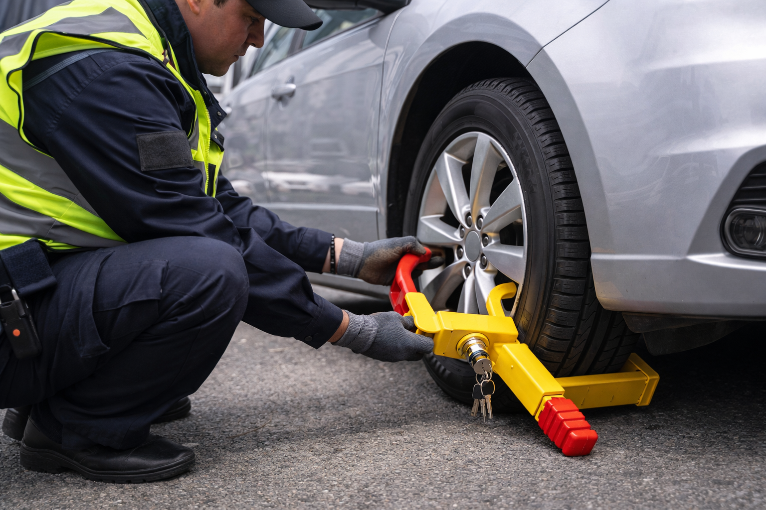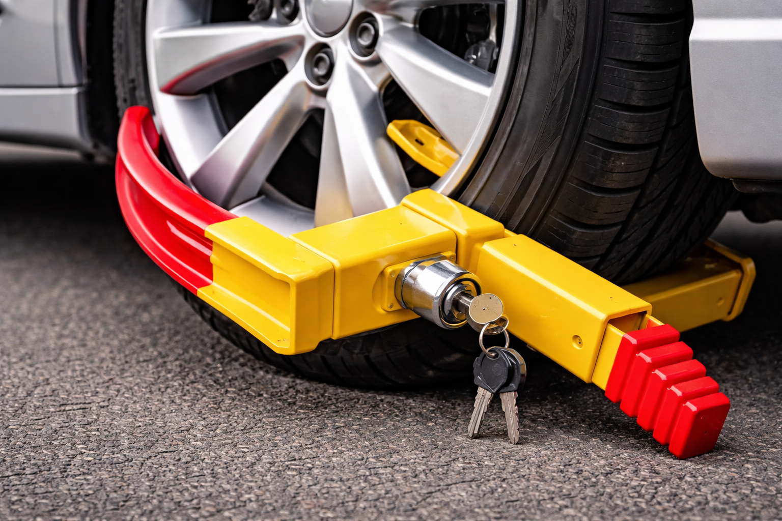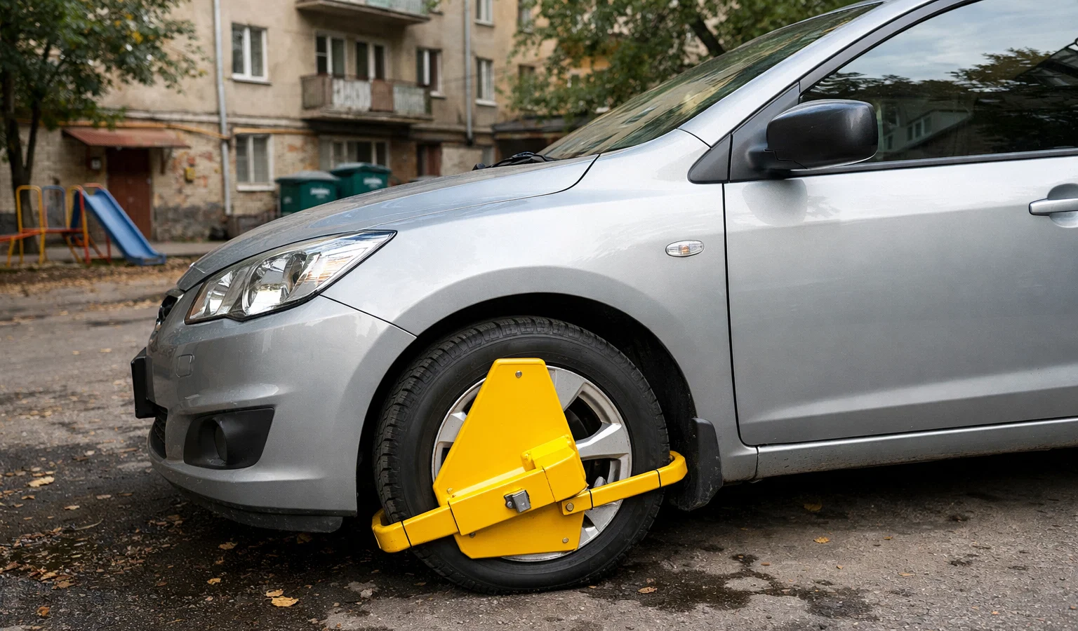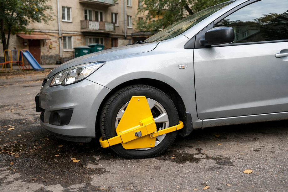 Блокиратор — это металлическое устройство, фиксирующее колесо и полностью исключающее возможность движения автомобиля. Его устанавливают за нарушение правил парковки как альтернативу эвакуации. Машина остаётся на месте, но воспользоваться ею невозможно.