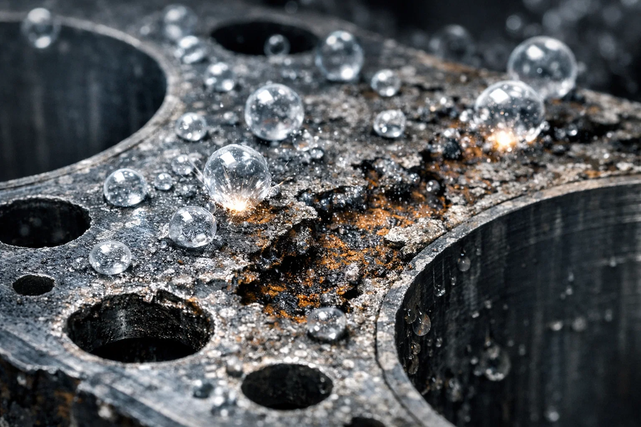 At the moment of collapse, a pressure of hundreds, and sometimes thousands, of atmospheres occurs at the point of contact for fractions of a microsecond. In terms of destructive impact, this process is comparable to sandblasting.