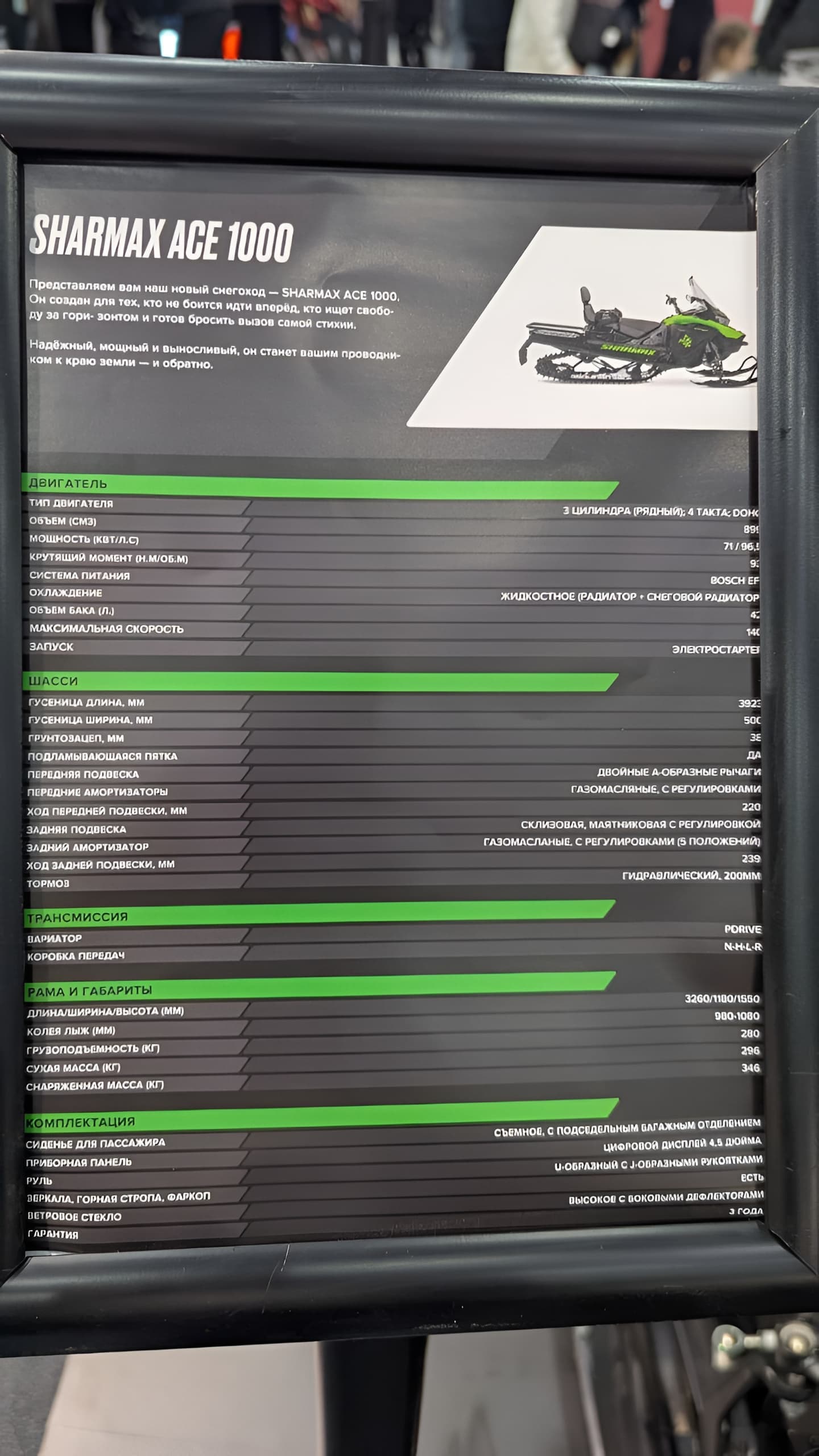 The Sharmax Ace 1000 snowmobile, designed for operation in harsh climatic conditions and on rough terrain, was presented at the "Motovesna-2026" exhibition. The model is designed for users who need equipment for long trips off prepared tracks, the developer and manufacturer is QJ Motor.