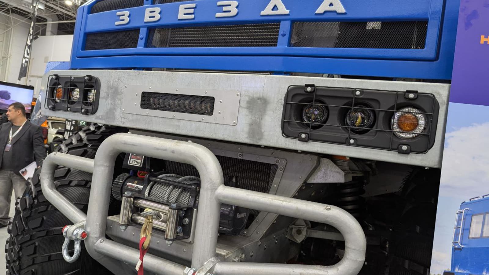 The vehicle attracts attention with its extreme appearance and huge low-pressure tires, we share exclusive photos of the exhibit.