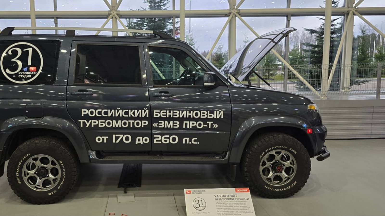 The UAZ "Patriot" with a modernized ZMZ Pro-T turbo engine producing 210 hp, developed by "Kuzovnaya Studiya 31," was presented at the "Moscow Auto Show." The new version is the most powerful "Patriot" available on the market.