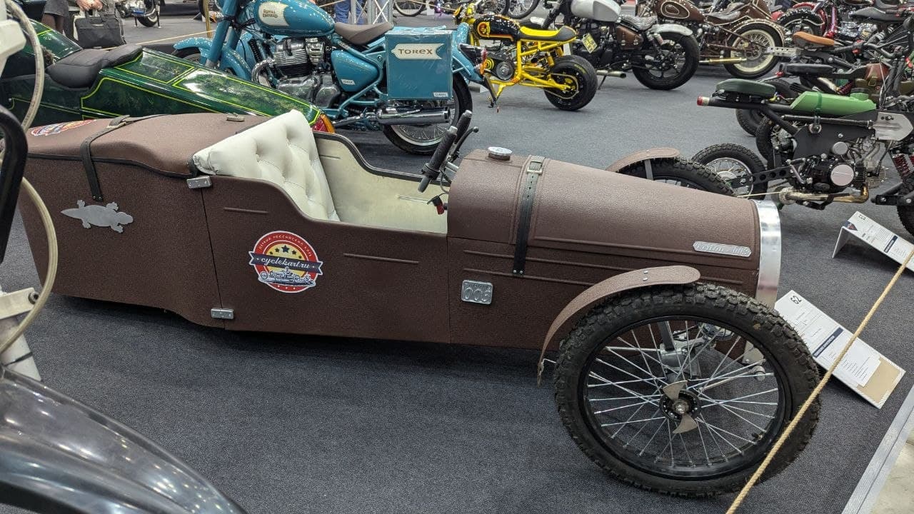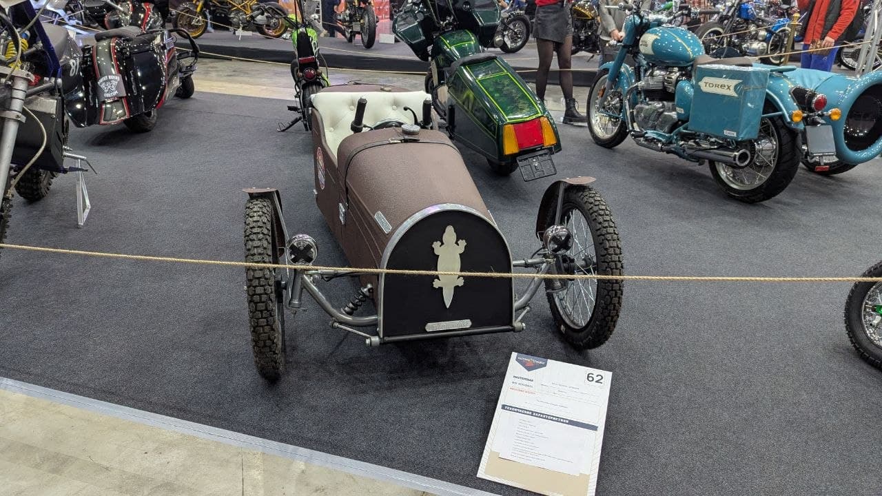 The "Motovesna`26" exhibition in Moscow featured an unusual custom project in the cyclekart format — a compact three-wheeled "Triton" from the Volt-motors workshop. The authors were inspired by the classic Morgan three-wheelers and reinterpreted the idea in a miniature and highly stylized format.