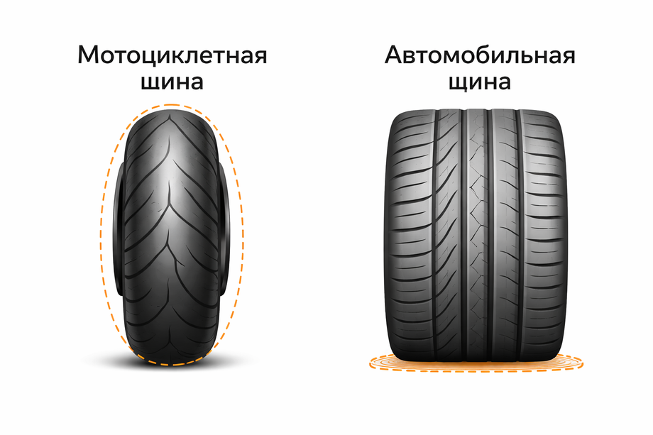 En la terminología profesional, se trata de la geometría del perfil. Las motocicletas se caracterizan por el llamado perfil redondo o radial, mientras que en los automóviles los neumáticos están orientados a una forma más plana con respecto a la superficie de la carretera. A primera vista, esto puede parecer un detalle insignificante, pero es precisamente la forma del perfil la que está directamente relacionada con la física del movimiento, la maniobrabilidad y la seguridad.