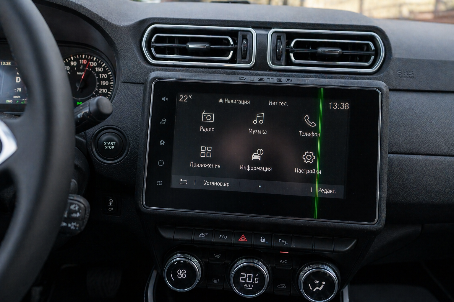 En las versiones más caras, Duster está equipado con el sistema multimedia Easy Link con una pantalla de ocho pulgadas. Desde el punto de vista de las capacidades, parece moderno y ofrece un amplio conjunto de funciones.