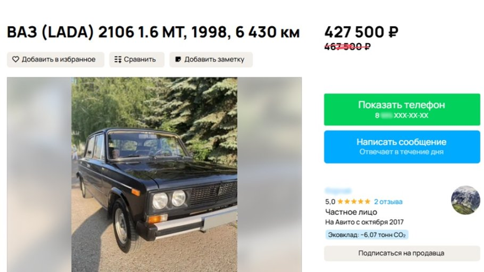По словам нынешнего владельца, автомобиль 14 из 27 лет простоял в гараже, а зимой его не эксплуатировали. Пробег автомобиля — 6430 км.