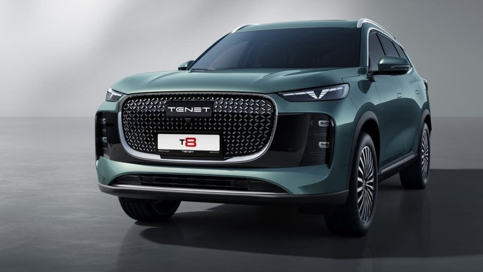 Tenet T8 — перелицованная версия Chery Tiggo 8 Plus с новой светодиодной оптикой, выдвижными дверными ручками, крупной хромированной решеткой радиатора с необычным рисунком, 19-дюймовыми дисками и двойными выхлопными трубами.