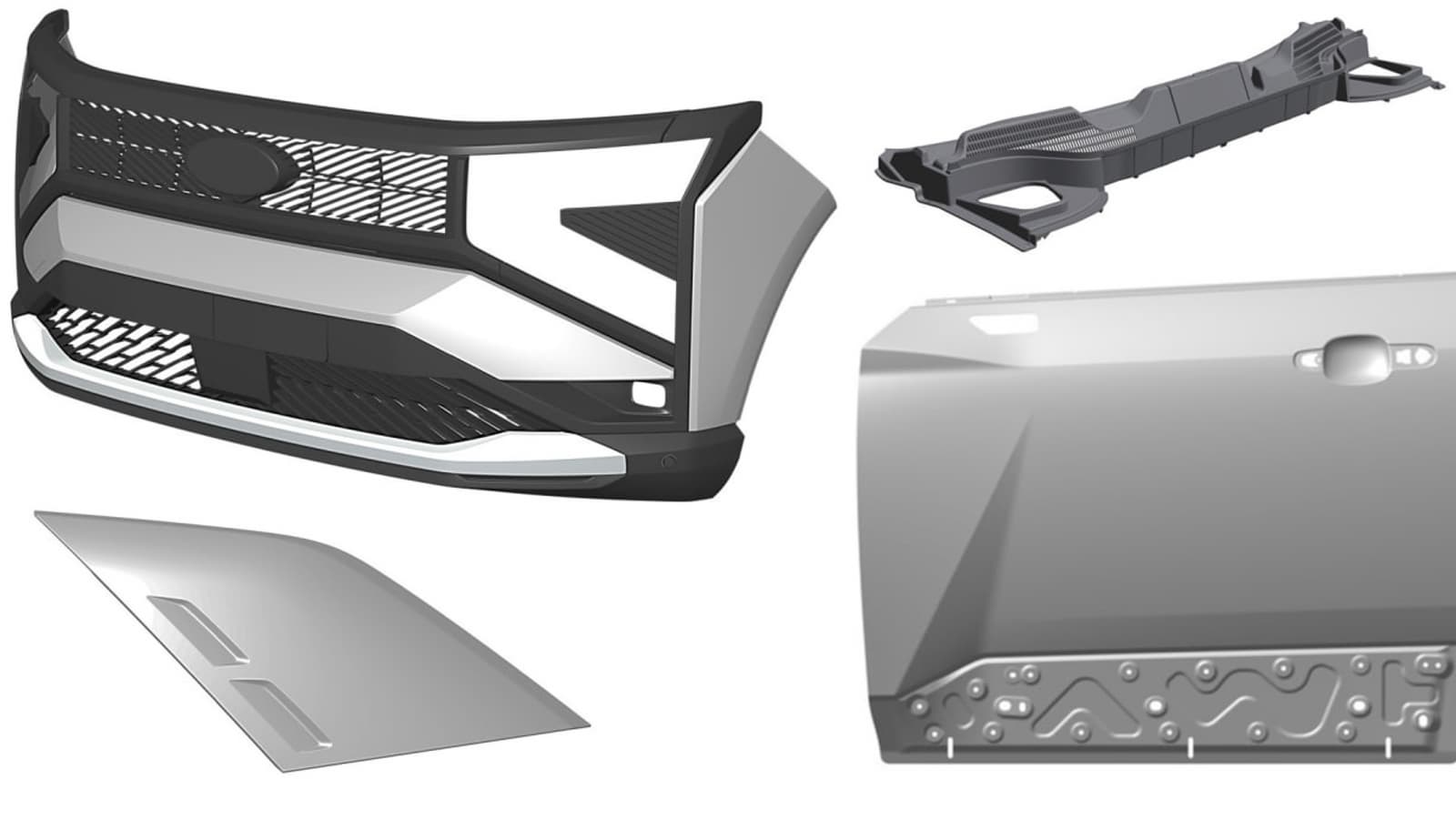 АвтоВАЗ активно готовит к производству свой первый кроссовер Lada Azimut. Как сообщает «Автопоток», компания зарегистрировала в базе ФИПС целую серию новых патентов, связанных с внешними элементами модели. Среди опубликованных изображений — бампер, панель передней двери и накладка задней стойки крыши.