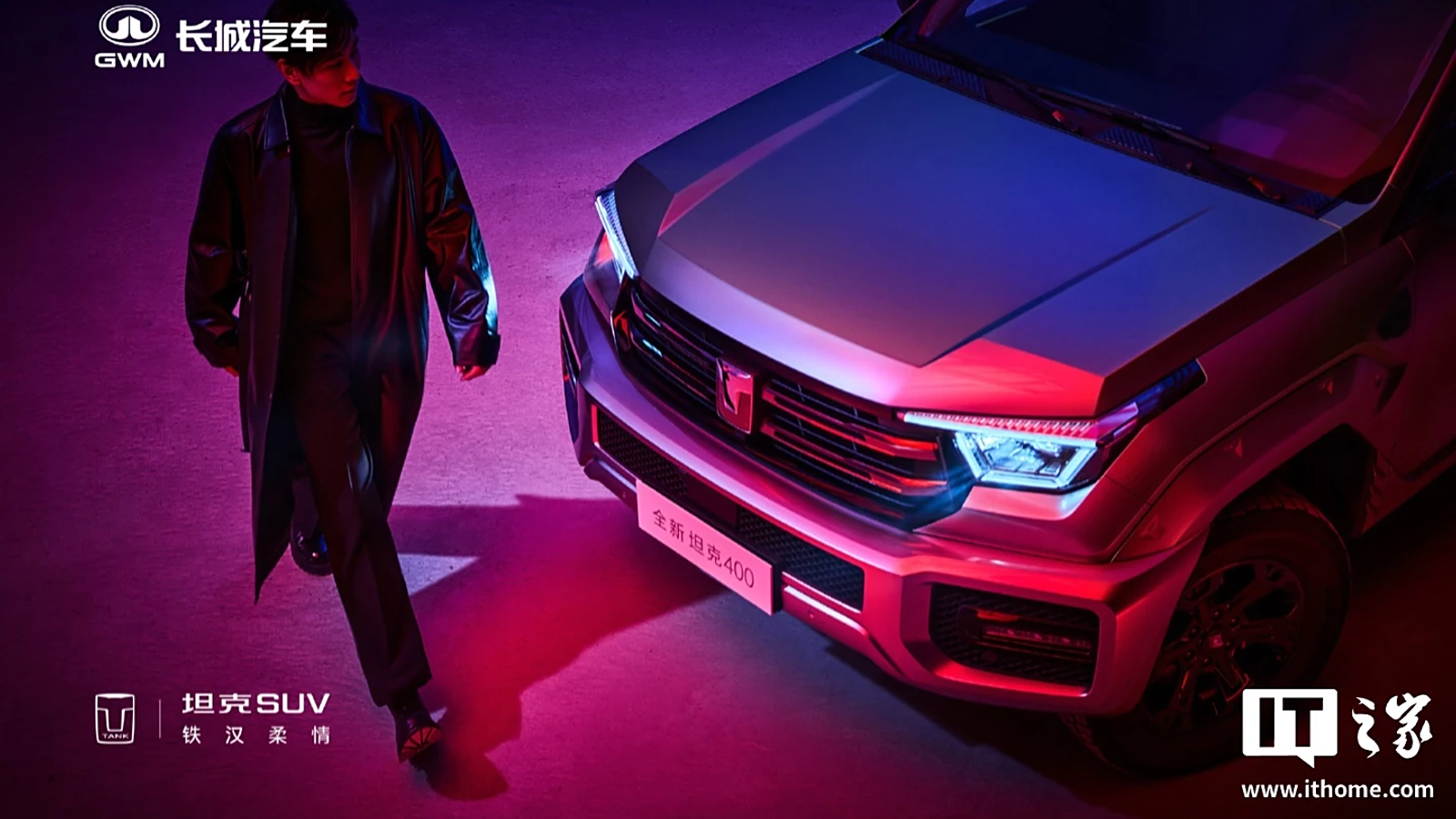 Впервые Tank 400 представлен в новом оттенке Dunhuang Purple. На крыше появился лидар, добавлены боковые и задние камеры, а также система полуавтономного вождения Coffee Pilot Ultra третьего поколения. Она поддерживает функции городского и трассового автопилота — City NOA и Highway NOA.