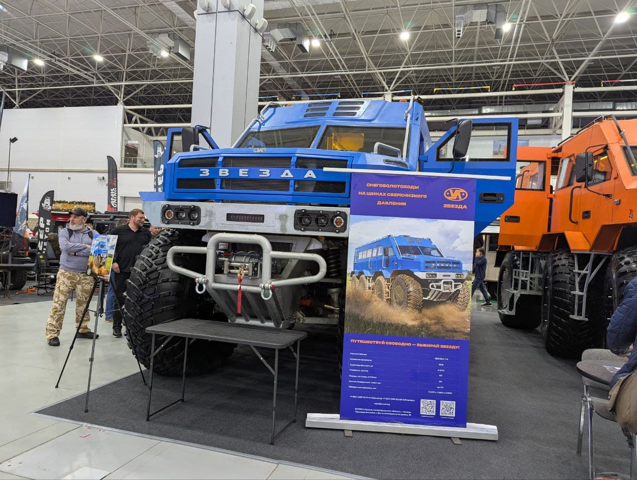 Машина привлекает внимание своим экстремальным видом и огромными колесами низкого давления, делимся эксклюзивными снимками экспоната.
