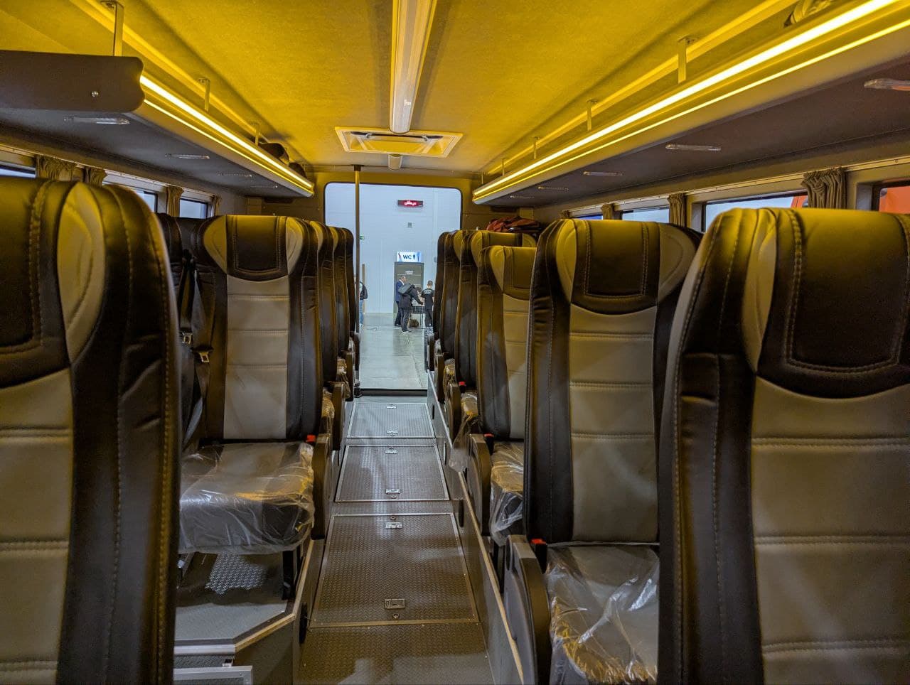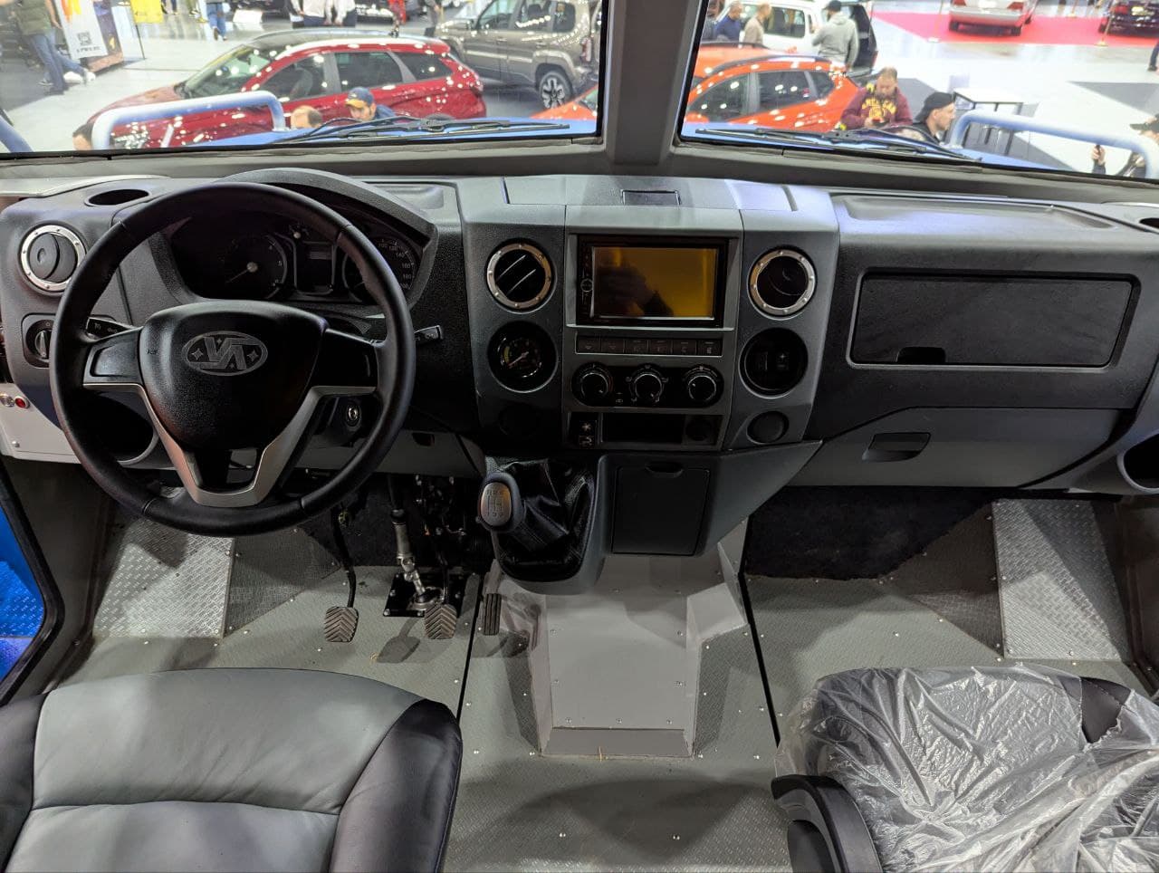 Максимальная скорость заявлена на уровне 80 км/ч, при среднем расходе около 30 л на 100 км. Габариты впечатляют: почти десятиметровая длина, ширина 2,85 м и высота 3,6 м.