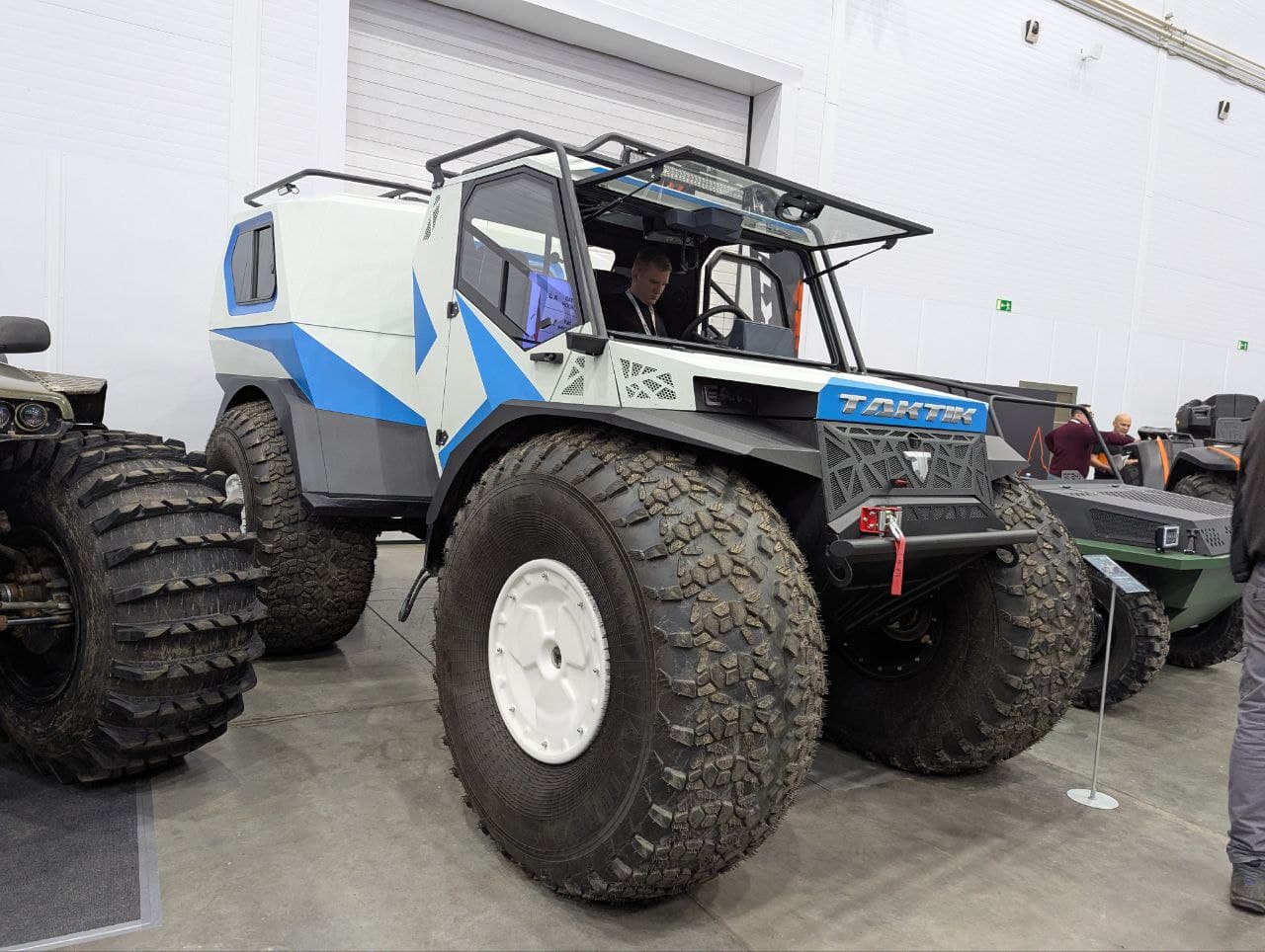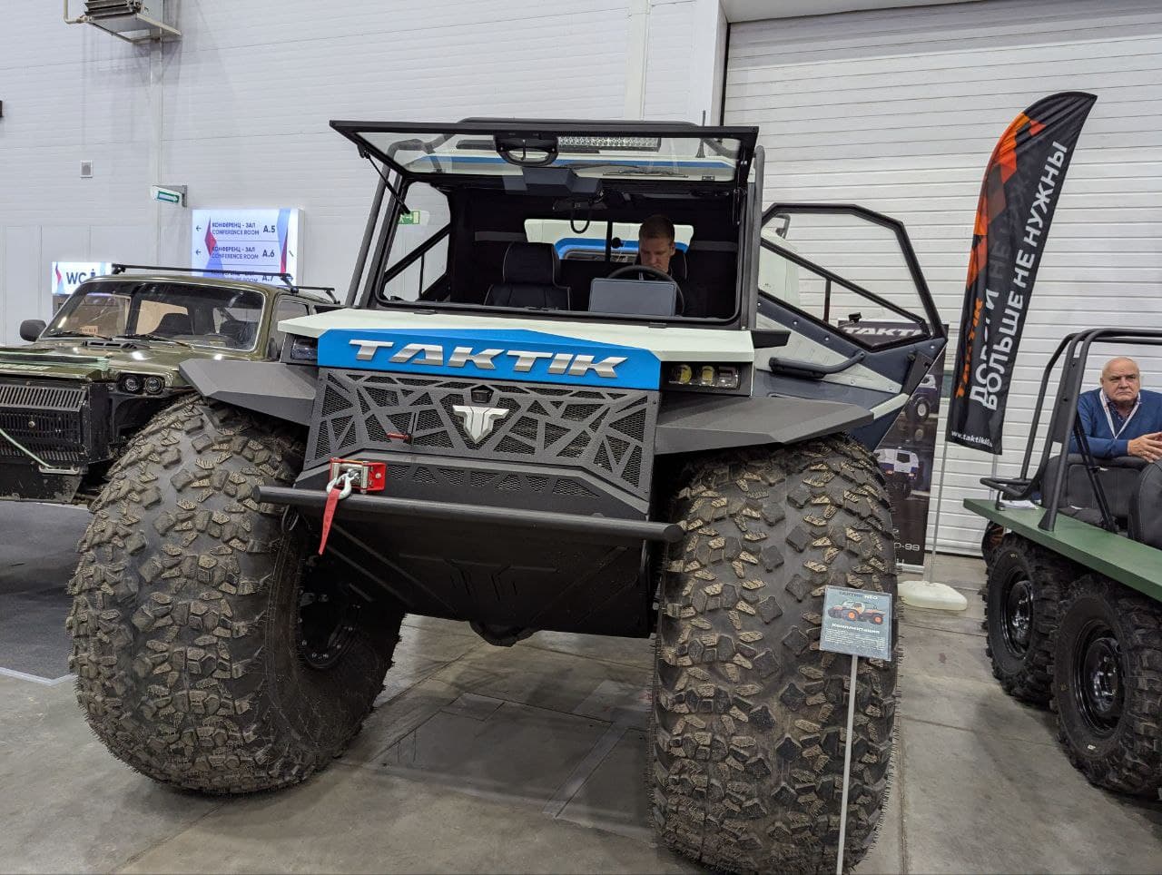 На выставке «Мотозима 2025» в парке «Патриот» презентовали новый вездеход Тактик Neo. Машина рассчитана на восьмерых пассажиров — два в кабине и шесть на заднем ряду.