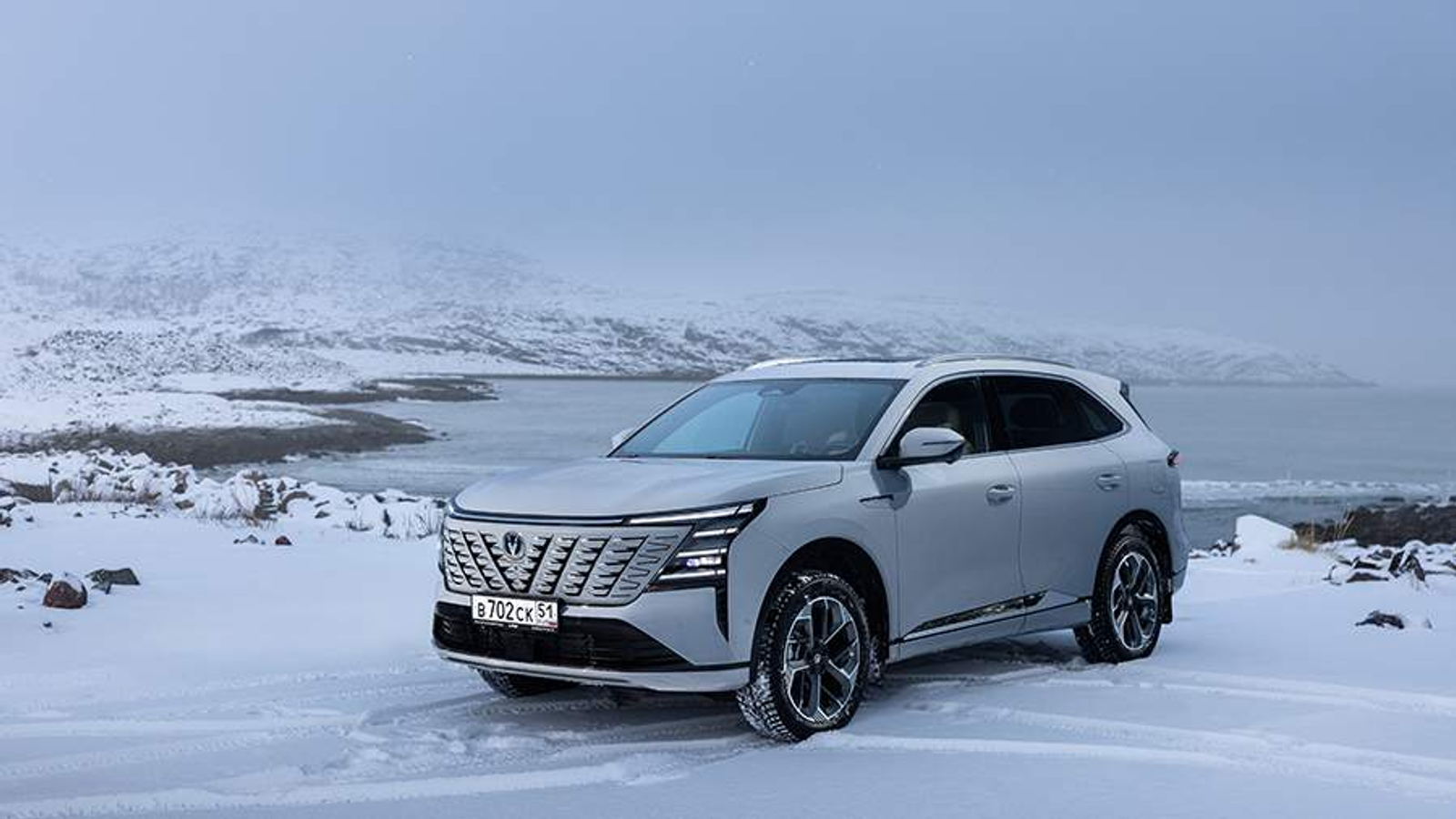 Главное впечатление производит салон. На передней панели — панорамное стекло с тремя дисплеями, своя навигация на базе «Яндекса», «VK-музыка» и беспроводные CarPlay/Android Auto. Уже в базе — полный набор электронных ассистентов ADAS, шесть подушек безопасности, климат-контроль, зимний пакет, круговой обзор и «прозрачное шасси».