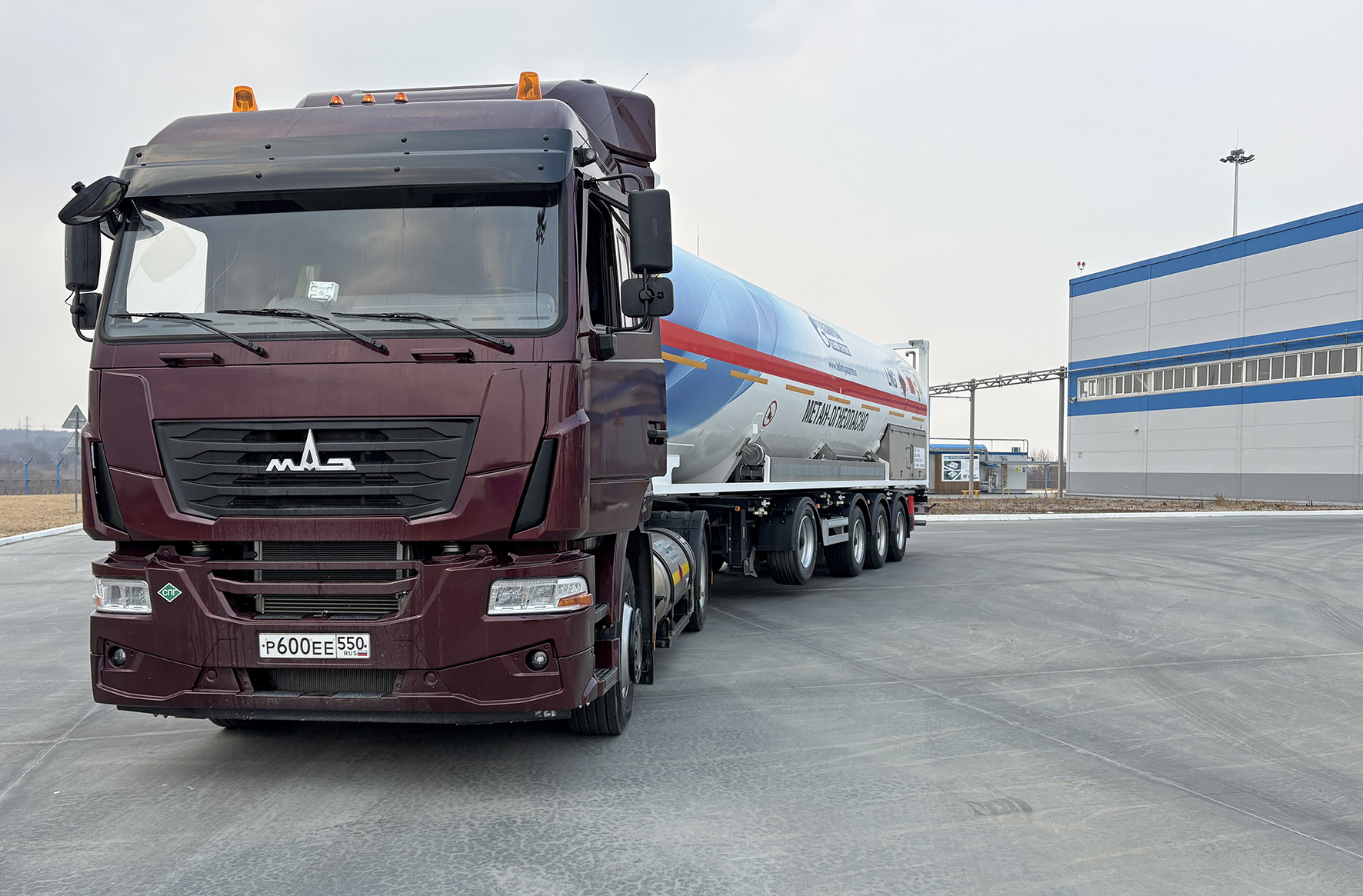 На Дальнем Востоке началась опытная эксплуатация тягача МАЗ-54А02N на СПГ. Испытания проводит «Газпром гелий сервис». Машина задействована в ежедневных перевозках на логистическом центре и используется для доставки сжиженного природного газа на заправочные станции компании.